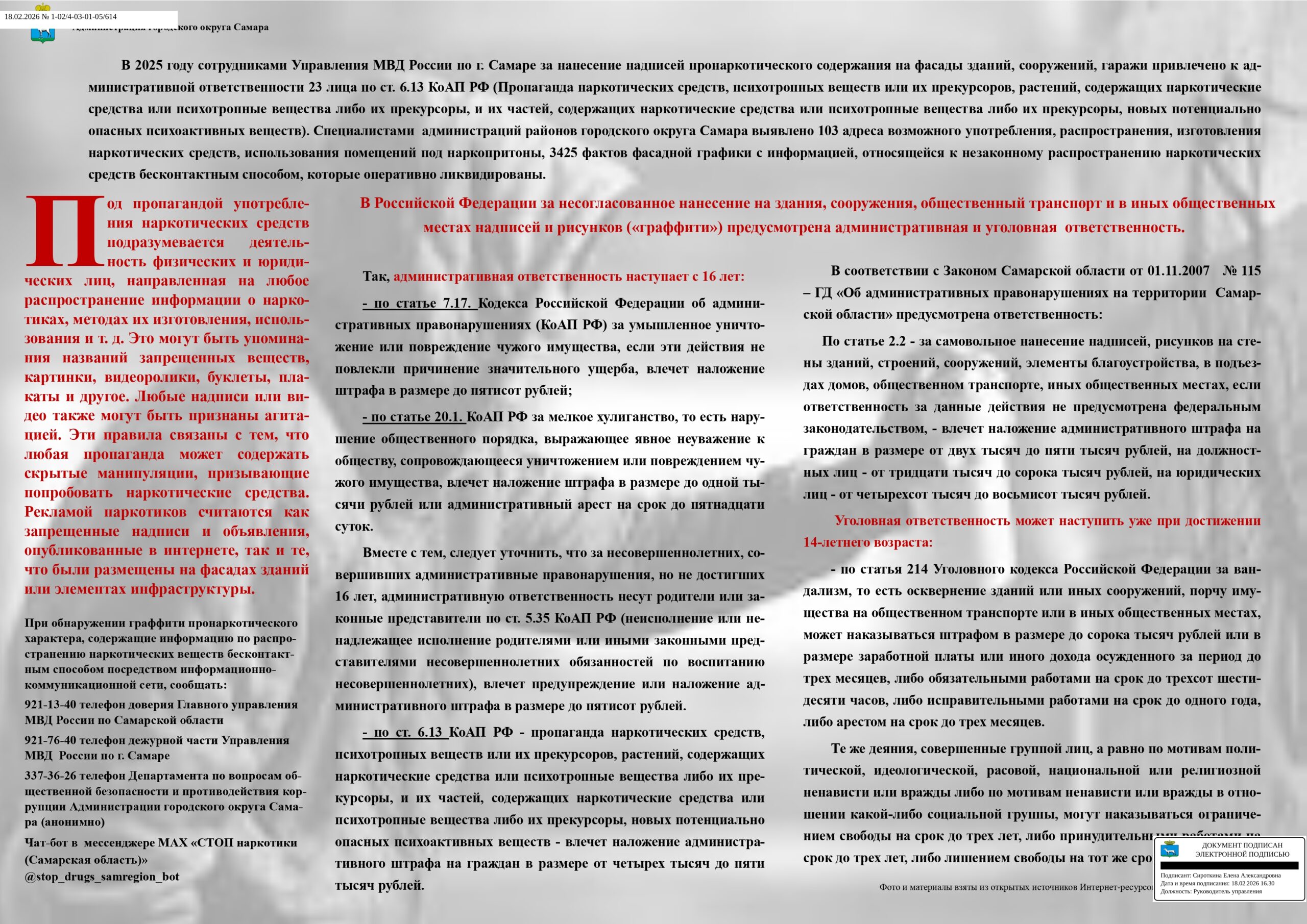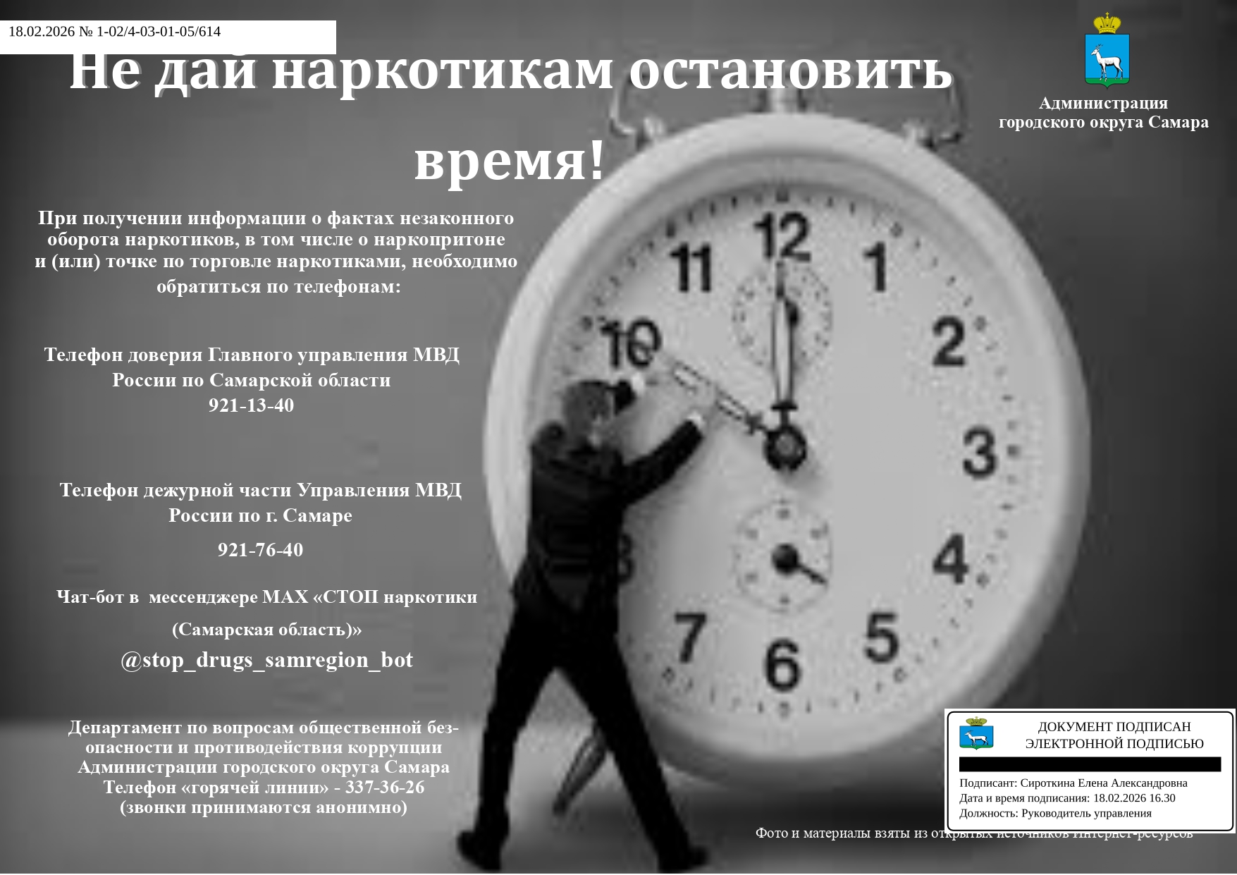 | Телефон доверия ГУ МВД России по Самарской области | 8(846) 278-13-40 (круглосуточно) |